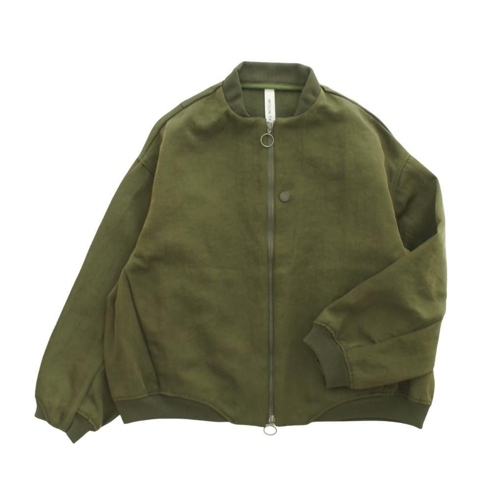 フライトジャケットをモチーフに、裾と袖口をブラウジングさせ、ふんわりとした丸みのあるシルエットの、スタイリッシュな一重仕立てのショートブルゾンです