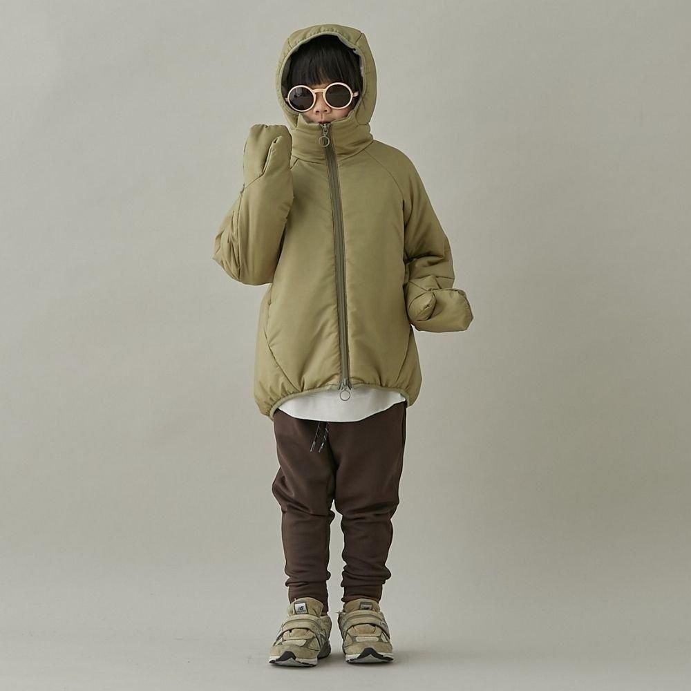 高めのフードや、絞られた裾、ミトンの仕様で、暖かさを逃がしません