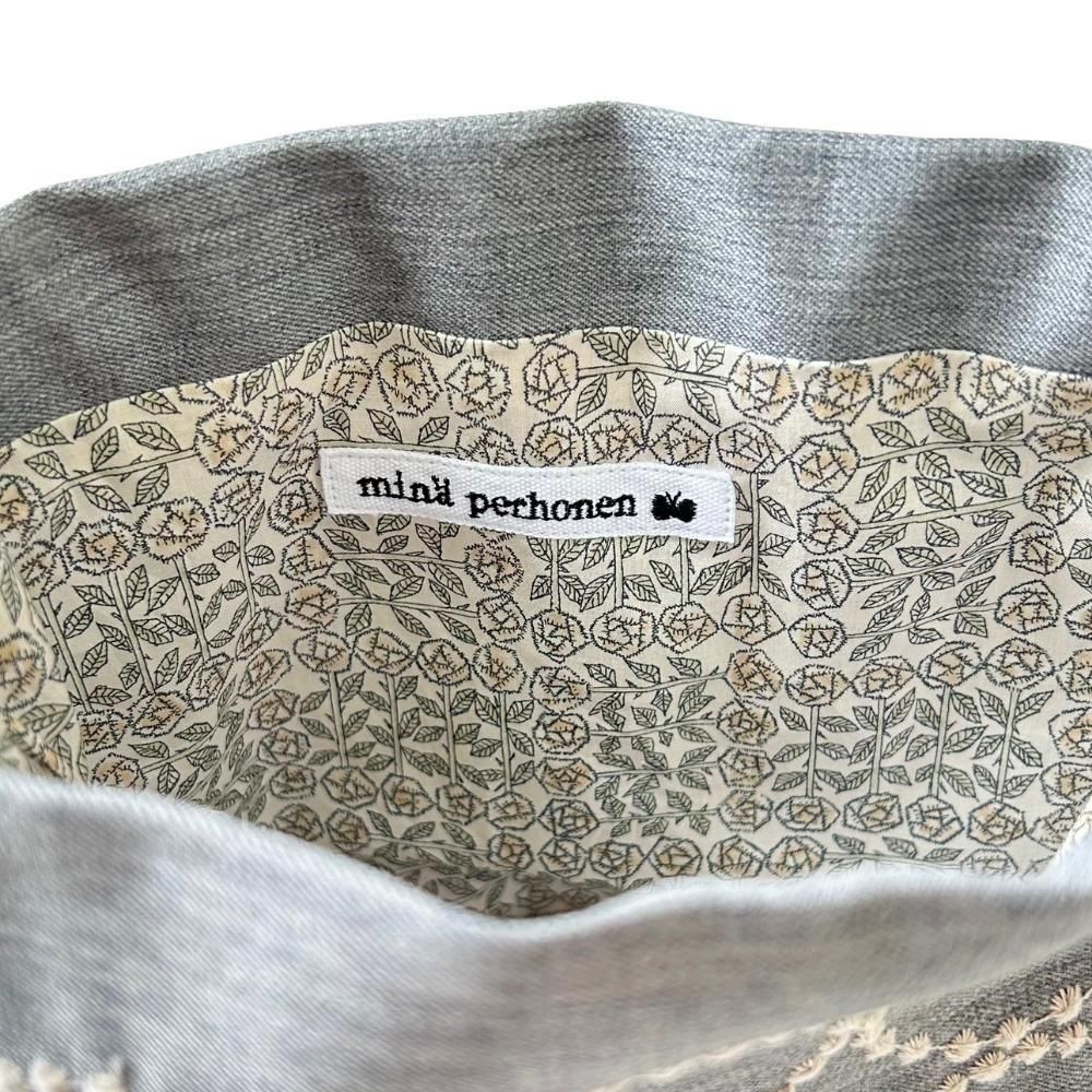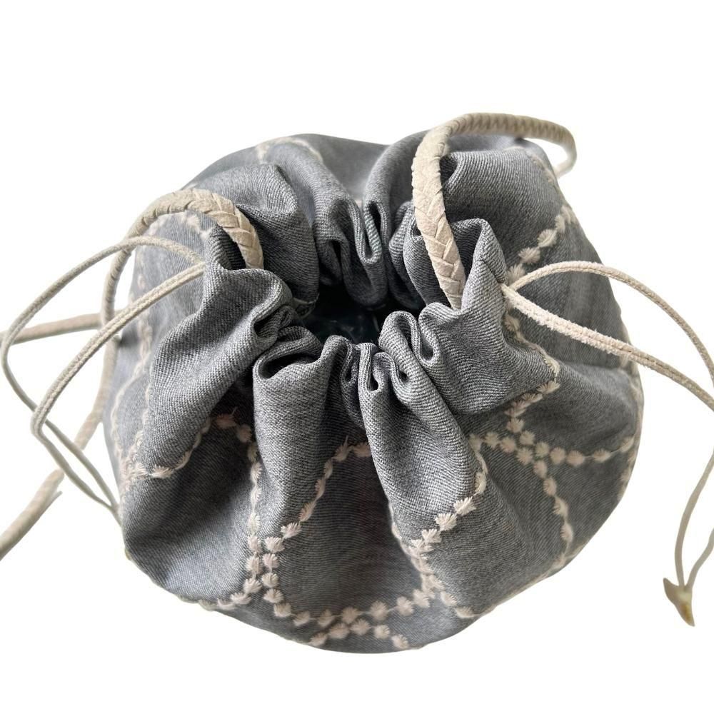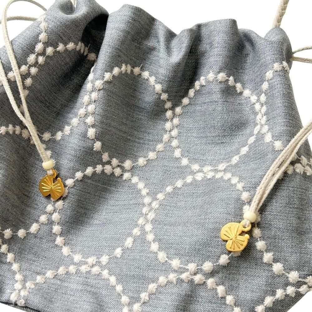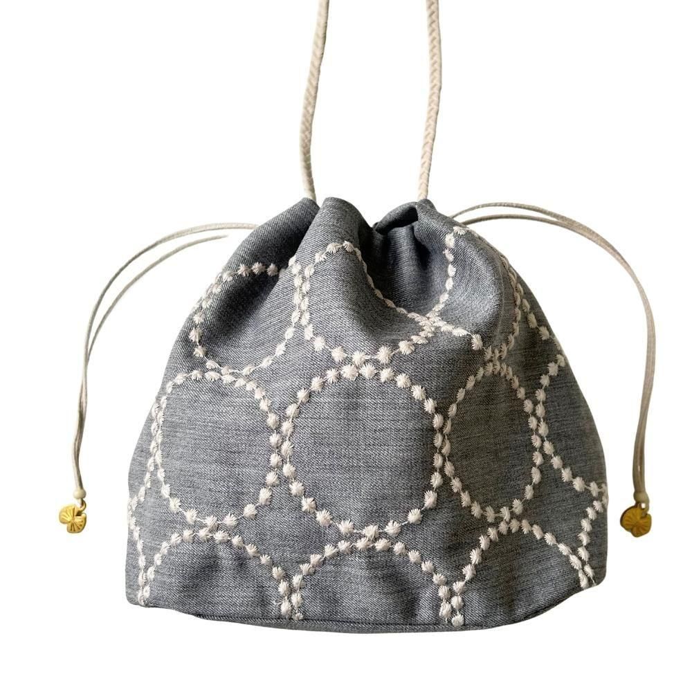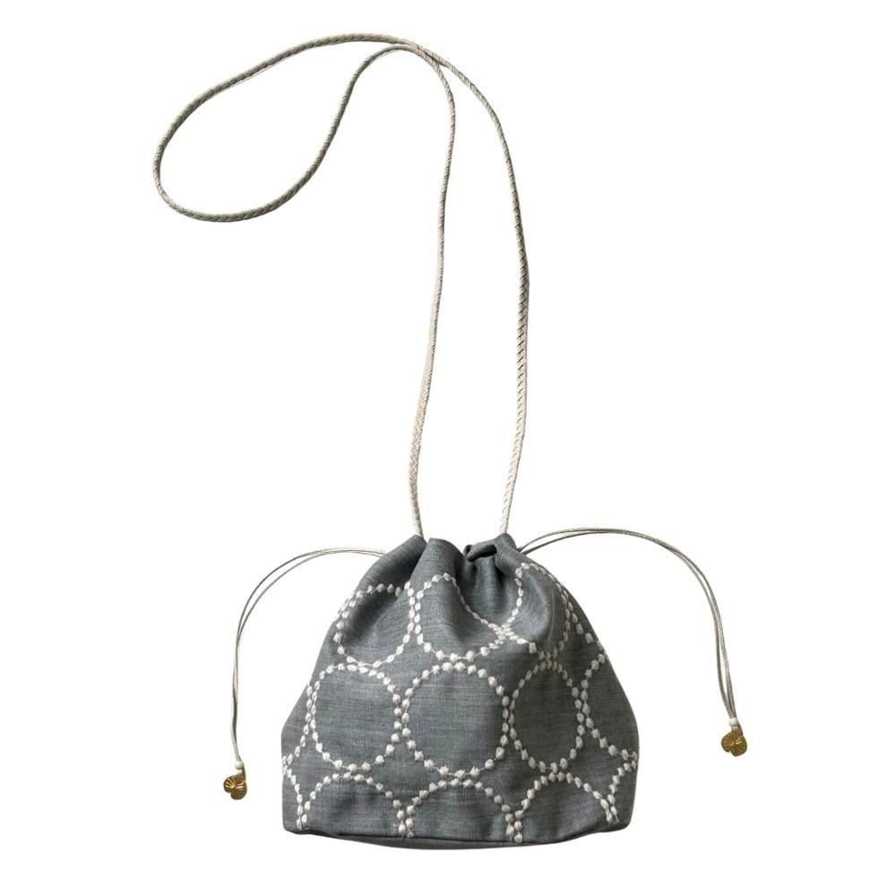 ウールの生地にtambourine刺繍を施した巾着ポシェット。