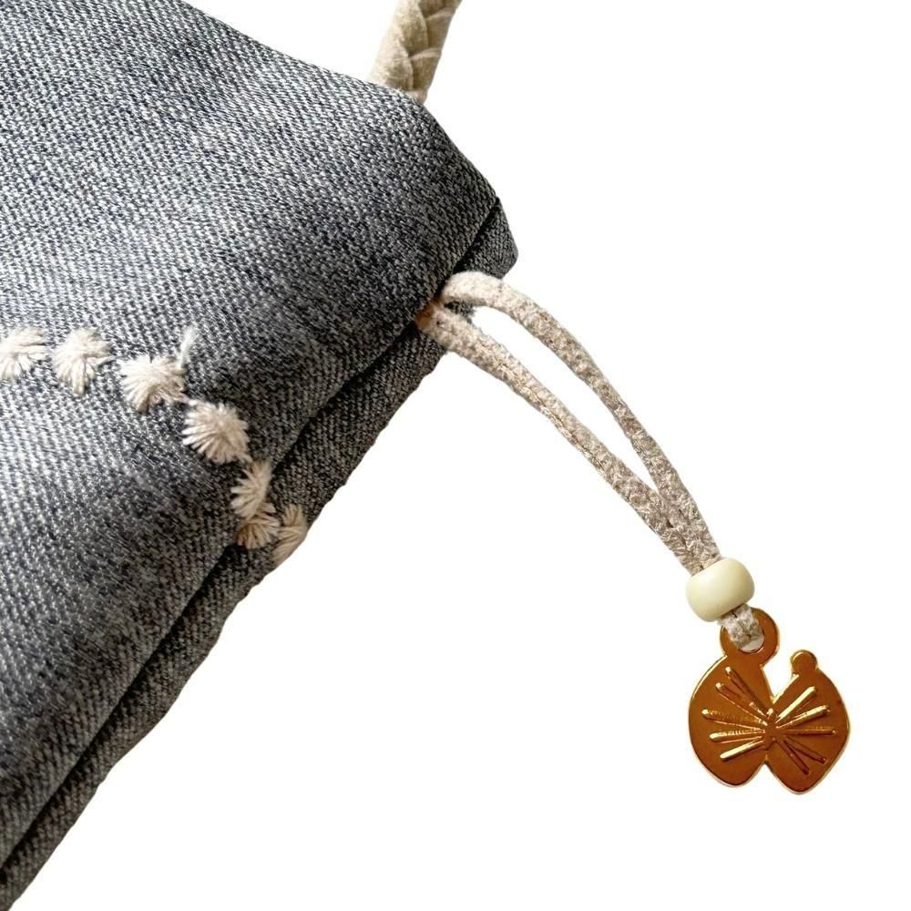 巾着ヒモの先には金色のちょうちょ飾りがついています。