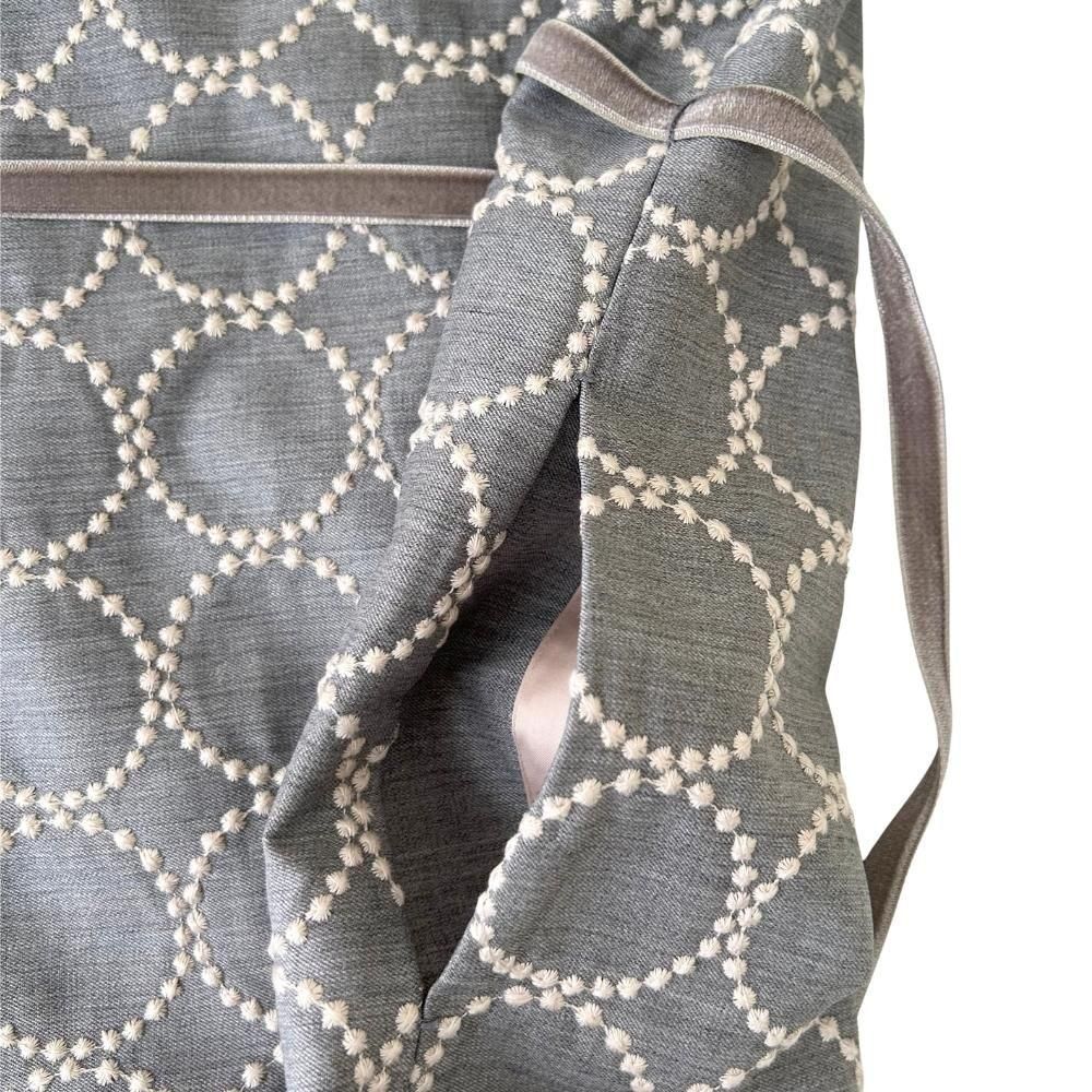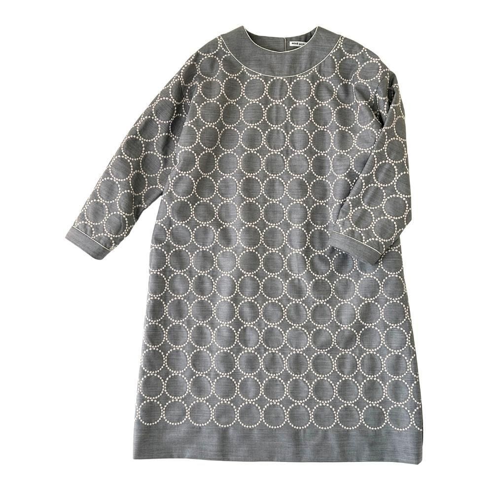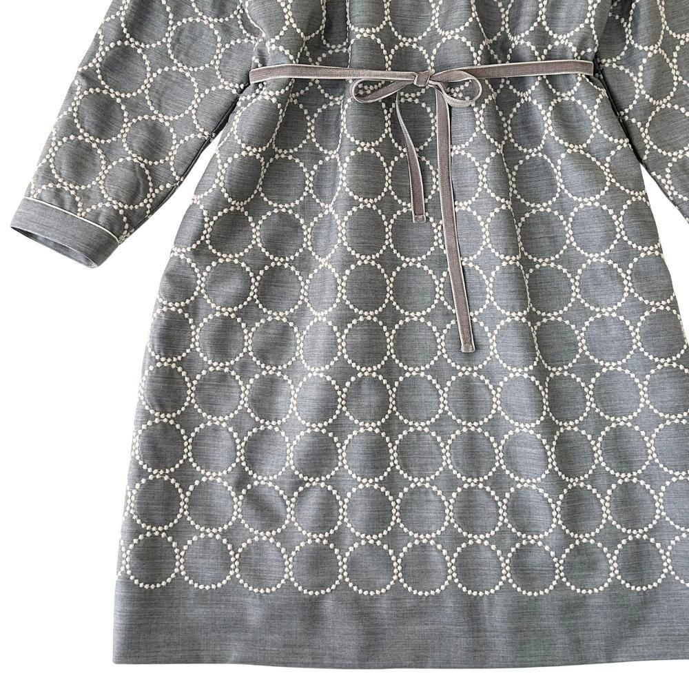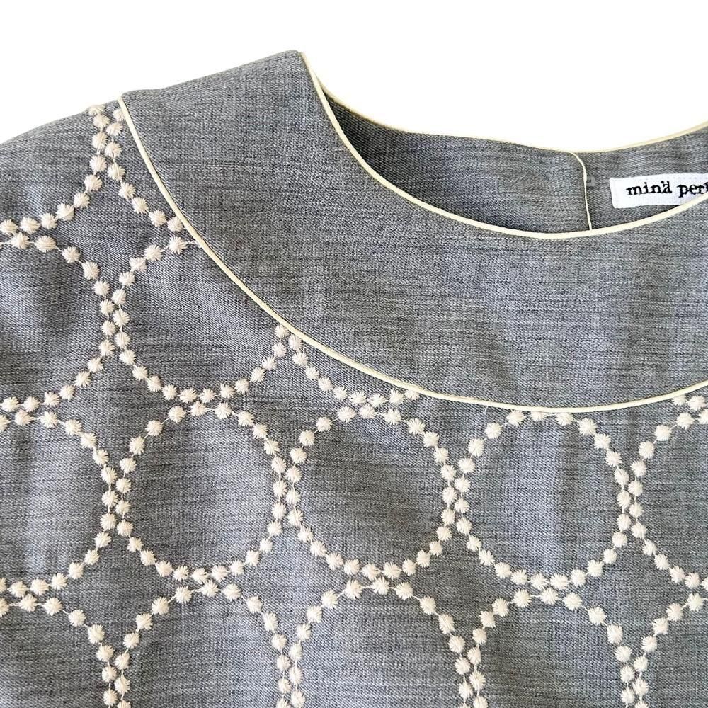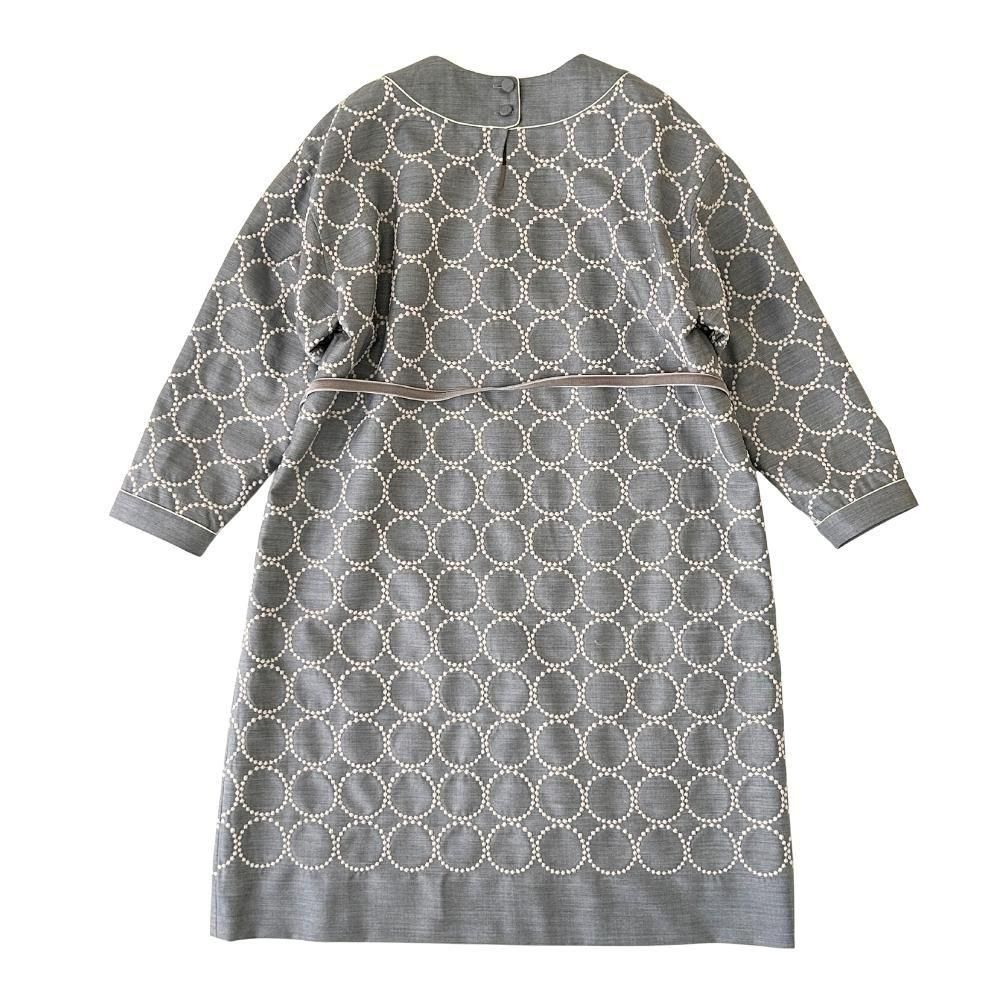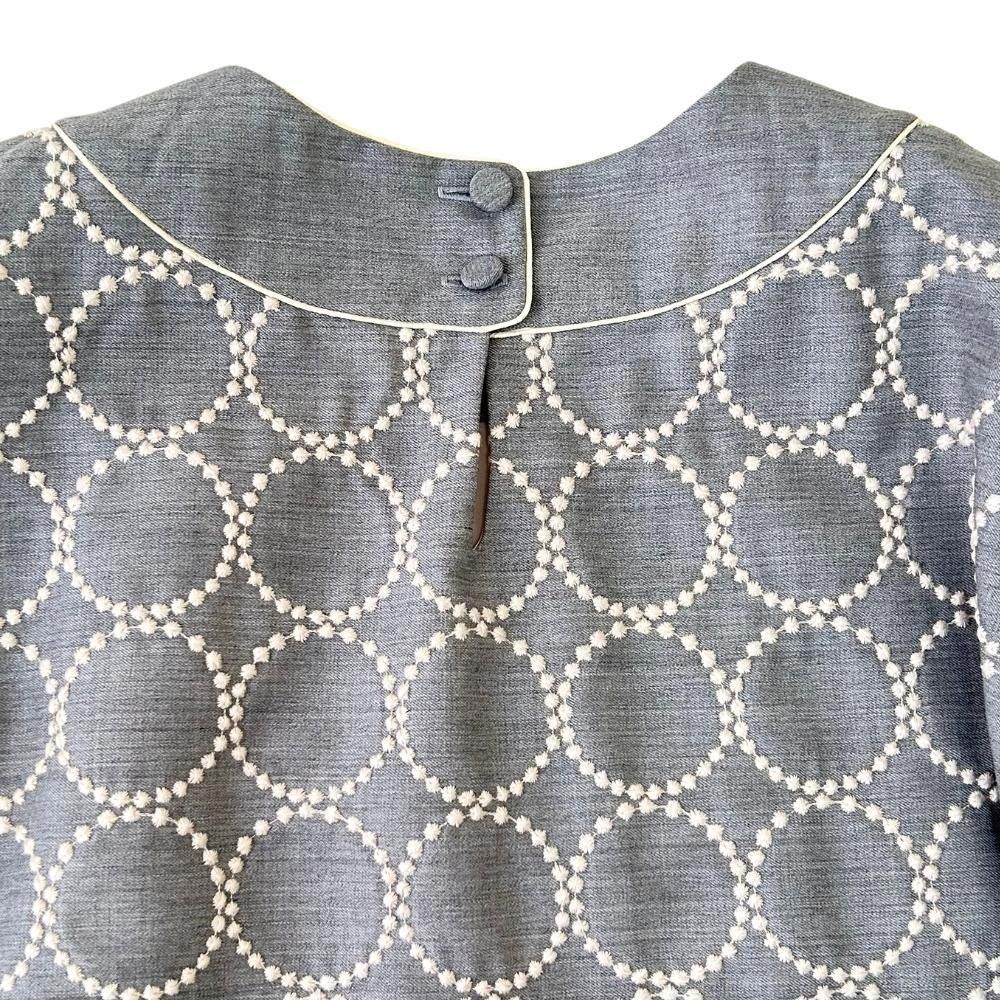 強く撚ったウール糸を使用した綾織の生地に刺繍を施したドレス。しなやかな風合いと落ち感のある生地感です。大きな襟がアクセントになった華や