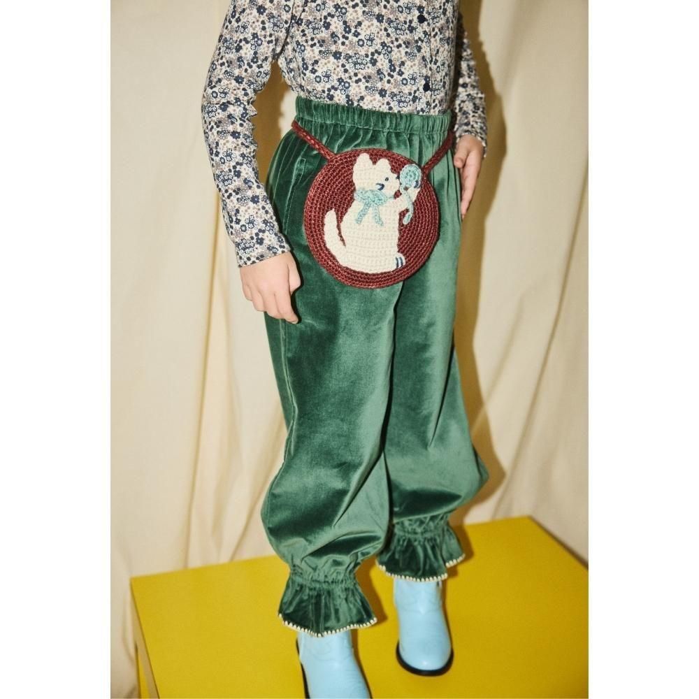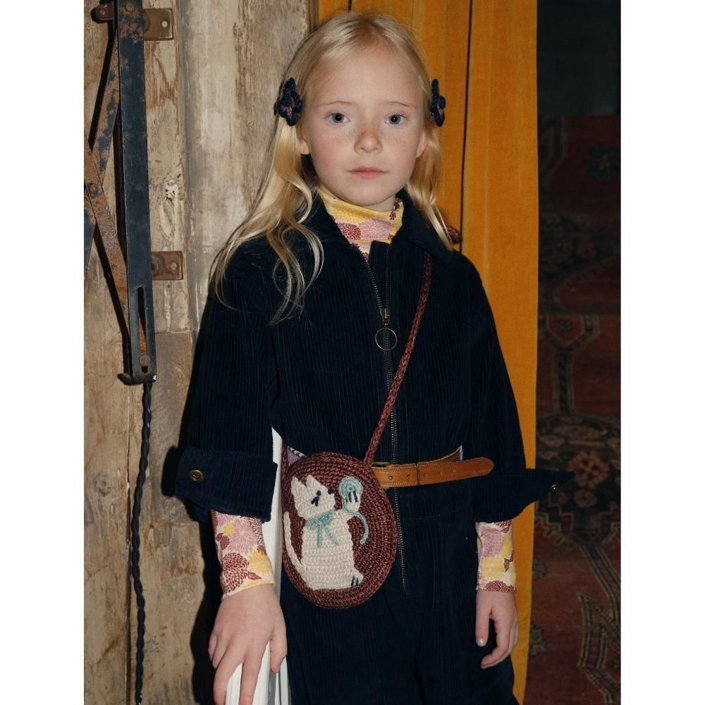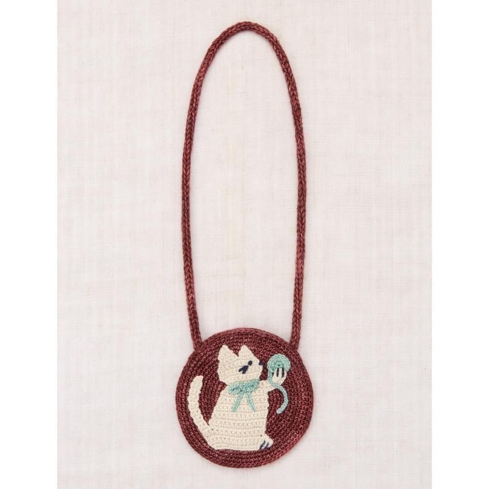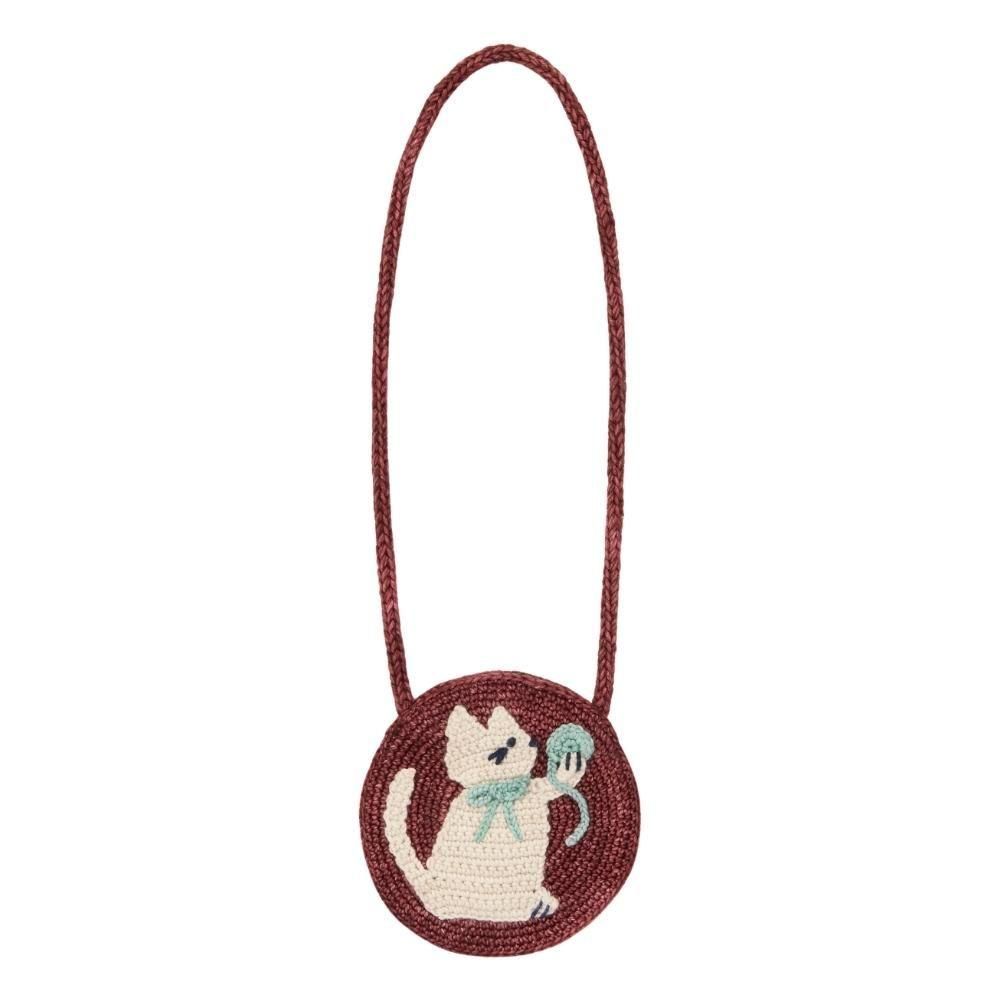 片面に猫のモチーフがあしらわれ、丈夫な二重構造で、マグネットスナップで留めます。
