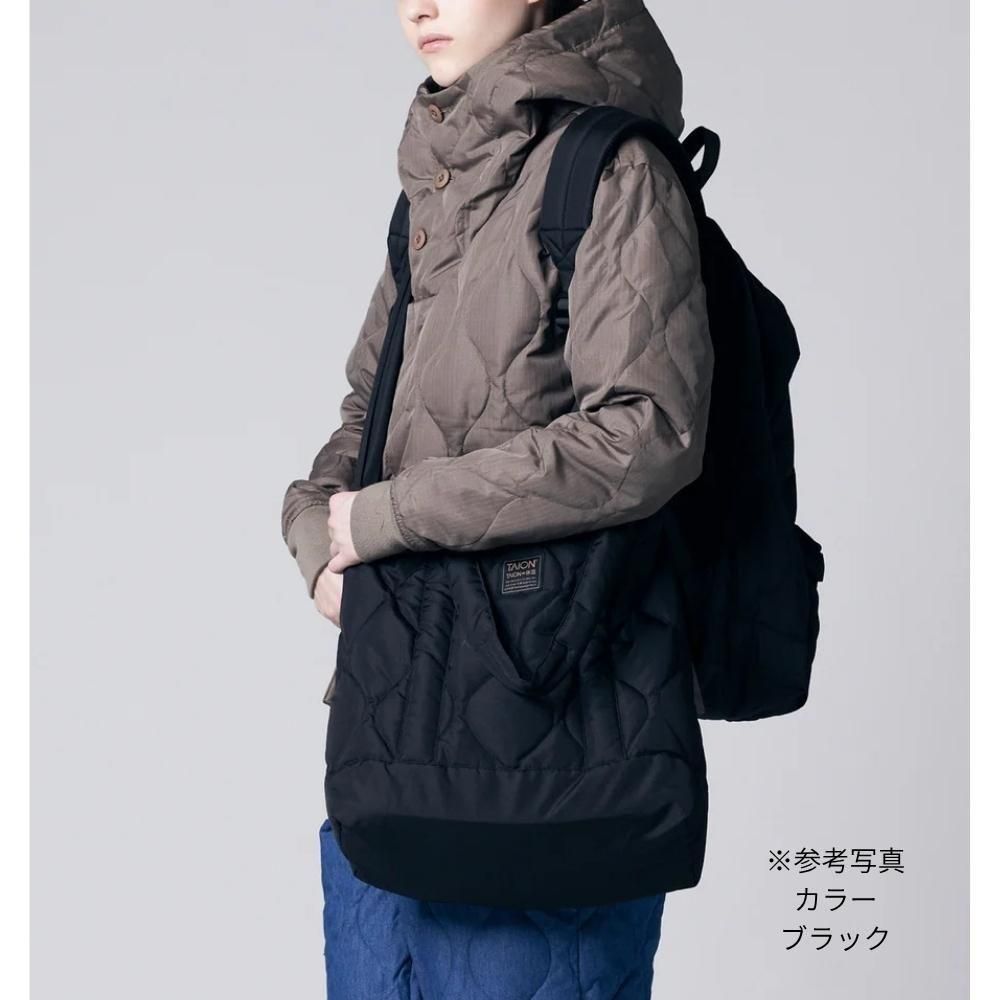 斜め掛け、手持ち、実用性を兼ね備えた、ダウントートバッグです。
